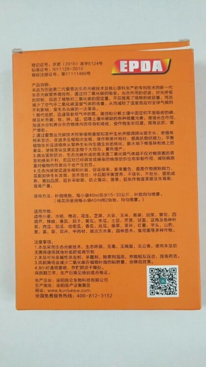 本品為引進第二代愛普達生態(tài)光碳技術及核心原料生產的專利技術的新一代生態(tài)光碳營養(yǎng)調控劑,通過對二氧化碳的吸收,光合作用的促進,對光呼吸的抑制,促進了植物對二氧化碳的固定量,不僅提高了植物的收獲量,而且減少了大氣中二氧化碳溫室氣體的含量,從而減輕了溫室效應對全球氣候的不利影響,是生態(tài)光碳技術的一次革命。